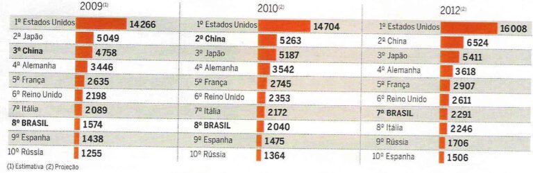 ?p=1152 Segundo uma publicação da revista Exame nº 01 de 2010 o Brasil será a 7ª maior economia do mundial em 2012, ultrapassando a Itália e a partir da segunda metade da década será a quinta maior. Segue o gráfico…